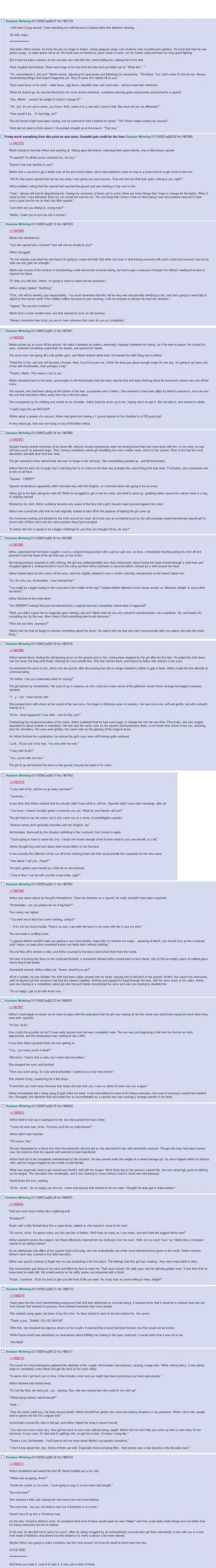 Overlooking her mispronunciation of his name, Arthur explained that he had used magic to change her into her new form. Physically, she was roughly equivalent to about sixteen or seventeen. Her hair was the same color as the squirrel she'd previously been, a rich brown that shone in the sun, reaching past her shoulders. Her eyes were golden, the same color as the glowing of the magical acorn.